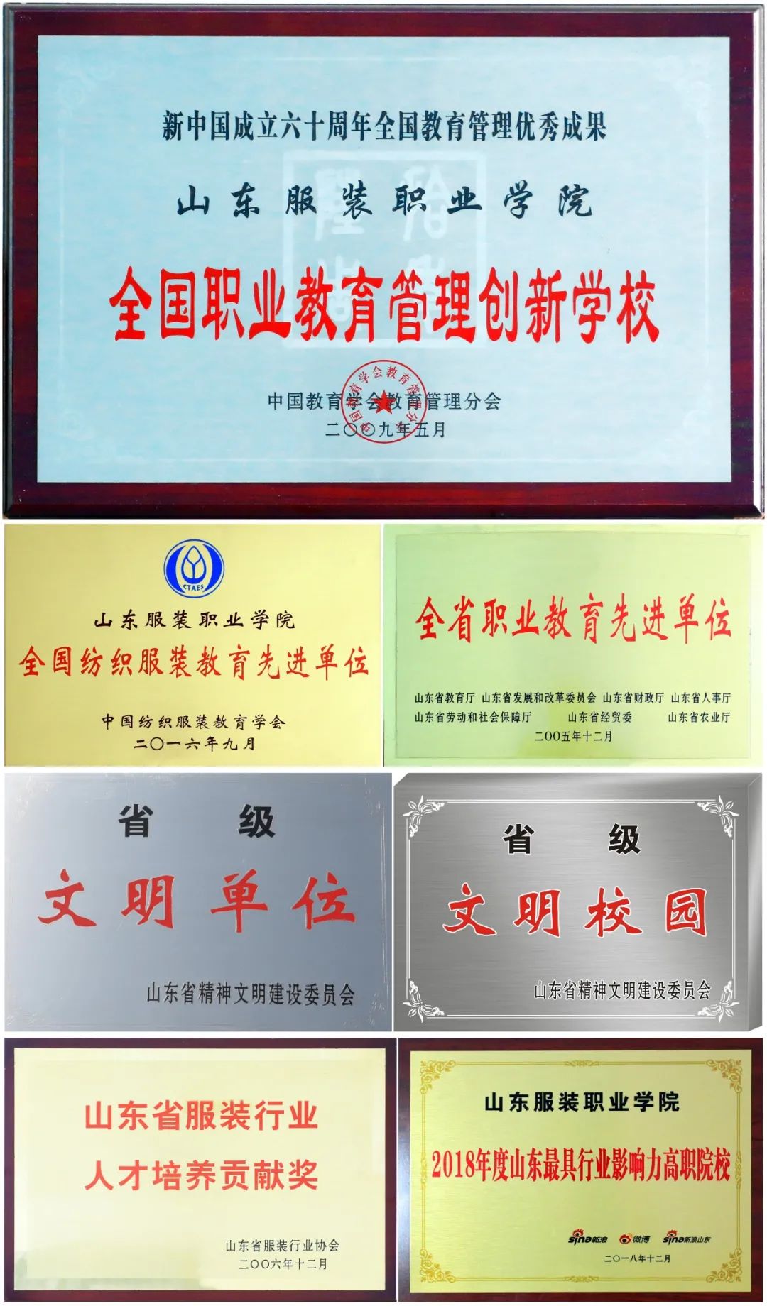 先后荣获“全国职业教育管理创新学校”“全国最具特色高等职业院校”“全国纺织服装教育先进单位”“全省职业教育先进单位”“省级文明校园”等称号。