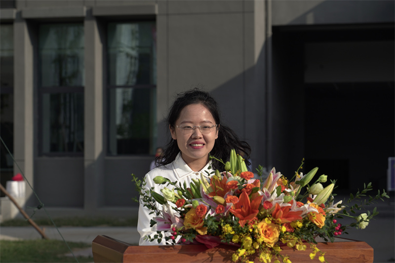 在鲜艳的五星红旗下,教师代表秦雯、范红敏先后发言,分享了自己伴随着聊城职院一同成长的心路历程,表达了在工作中展现责任担当的坚定决心,并送上自己对祖国的祝福、对学校的祝愿。