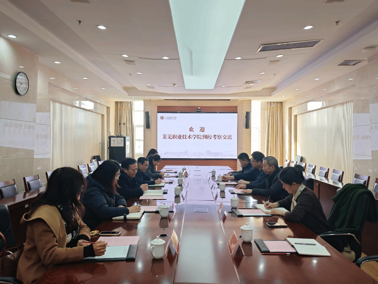 3月6日,莱芜职业技术学院党委委员、副院长周美栋一行到山东职业学院考察交流。党委副书记郭鹏出席会见。