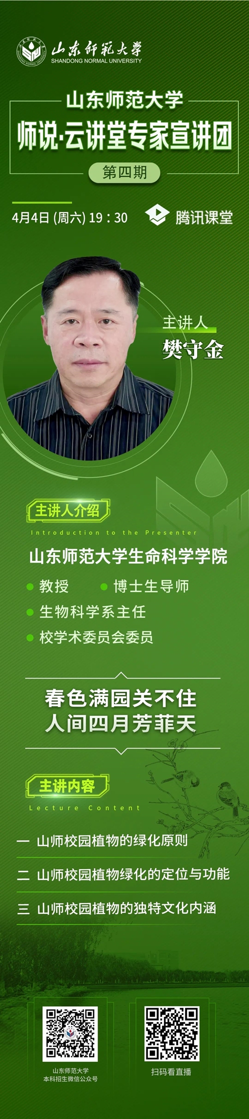 本周,学校隆重邀请了图书馆特藏部王恒柱主任、生命科学学院樊守金教授、教育学部魏薇教授讲述山师古籍资源、校园植物与学科实力雄厚的教育学部。具体安排如下: