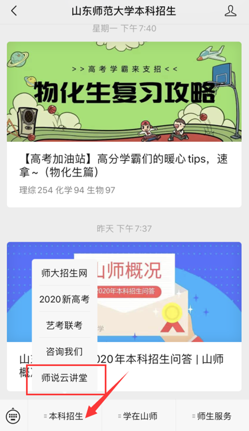 在收看节目的同时,对山东师范大学的招生政策还存有疑惑可以在线跟专家互动。如果无法收看直播、错过直播的考生和家长也可以利用网络咨询平台在线提问,山东师范大学招生办的工作人员会在咨询群内耐心解答各类招生问题,帮助考生及家长对山东师范大学建立更深入的了解。