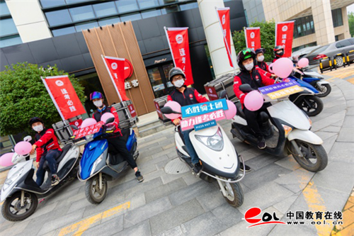 6月29日下午,8位载有“逢考必胜”旗帜的必胜客骑手在前方开道,行驶在宽阔的马路上,将近200份餐点送到了济南协和双语实验学校校门口高三年级全体班主任手中。趁着高三学生们还未下课,老师们和必胜客工作人员一起,将空置的教室装饰一新:西式长桌、鲜花点缀,精心准备的比萨等各种美食铺满桌面,为高三考生带来了长桌惊喜派对。此外,还设计了颇具仪式感的“录取通知书”信封寄语,让考生们写下自己心仪的大学和对一个月后自己想说的话,平稳心态,确保在考场上发挥出最佳状态。