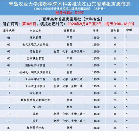 报考指南 | 青岛农业大学海都学院本科各专业填报志愿页码和代码