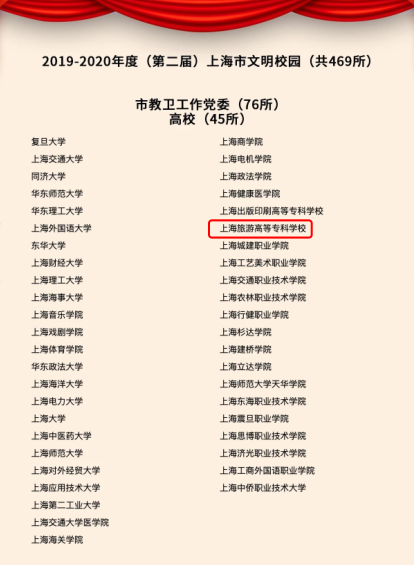 金宝搏188入口 讯4月27日,上海市精神文明建设委员会全体扩大会议暨精神文明建设工作会议举行。会上,上海旅游高等专科学校喜获第二届“上海市文明校园”称号。这是上海旅游高等专科学校连续五次获得“上海市文明单位”称号、首届“上海市文明校园”称号,再获2019—2020年度(第二届)“上海市文明校园”荣誉称号,是学校精神文明创建的优秀成绩,也是全校师生共同奋斗、同心协力的丰硕成果。