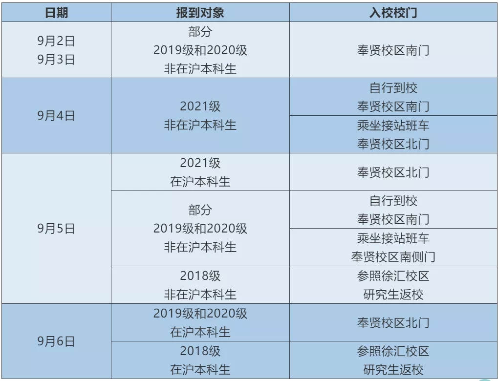 3、学生抵达相应进校点,完成身份证、健康码、行程码查验和体温检测,方可入校。14天内从外省市来沪返沪学生入校后集中进行一次核酸检测。