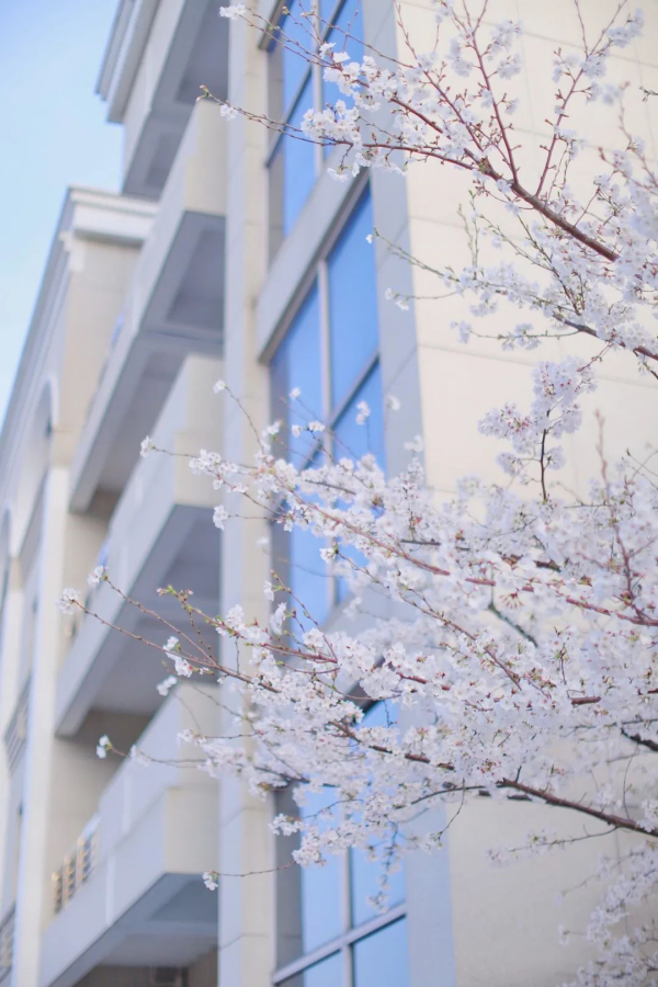 树上一片花海,纵是疾风骤雨,依然昂首挺立