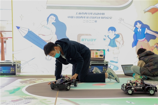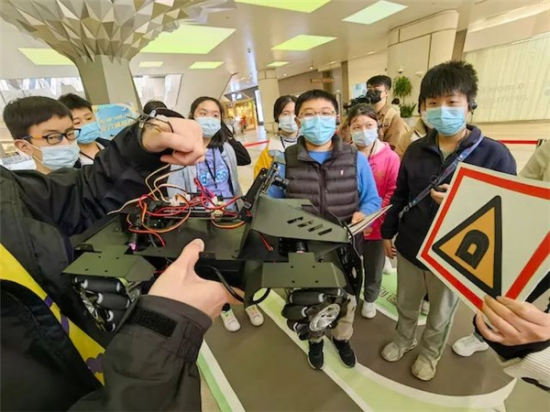 从小学三年级加入编程社团后,李王子第一次设计了小游戏《吃豆人》,从有兴趣到网上看视频自学,他逐渐喜欢上了编程世界。不过这次活动对他也有不小的挑战,做一个小游戏和控制一个实物是有差别的,“比如倒车要考虑是否会压线,看到路标如果没有作出改变又该怎么办,都要通过不停调试来实践。”