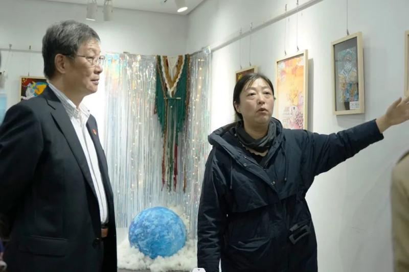11月14日,党委书记李月松,党委副书记、副校长段仁启莅临美术展并为开幕式剪彩。新媒体与文法学院院长张磊,副院长张虹、陈静静,以及相关职能部门负责人、二级学院院长、副院长和专业教师等嘉宾共同出席开幕式。