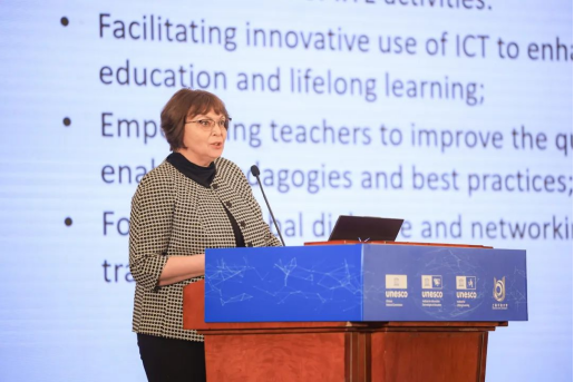 联合国教科文组织教育信息技术研究所数字化教学和学习材料部门主管斯维特兰娜·柯妮亚杰娃(Svetlana Knyazeva),她在演讲中提到,教育在不断的发展,将来没有必要去开展整套的教育,可以用微课程或者是微证书替代,她表示,这是经过很多研究之后达成的结论。