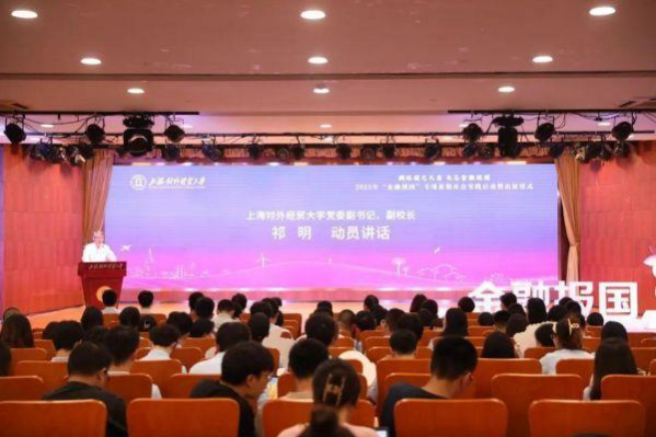 6月12日,“金融报国”专项暑期社会实践启动仪式在松江校区图文信息大楼507报告厅举行。校党委副书记、副校长祁明,上海陆家嘴金融城发展局党群工作处处长何建木,上海青年联合会副主席、“三个百里”乡村振兴学院院长于杰,浙商银行上海分行副总经理赵慧晶,乡镇政府、金融企业嘉宾代表,校党委组织部、党委宣传部、教务处、研究生院、党委教师工作部、党委学(研)工部、团委等相关部门负责人,金融管理学院全体领导班子,以及专项暑期社会实践指导教师代表、学生团队成员等400余人参加了启动仪式。启动仪式由金融管理学院党委副书记关印主持。