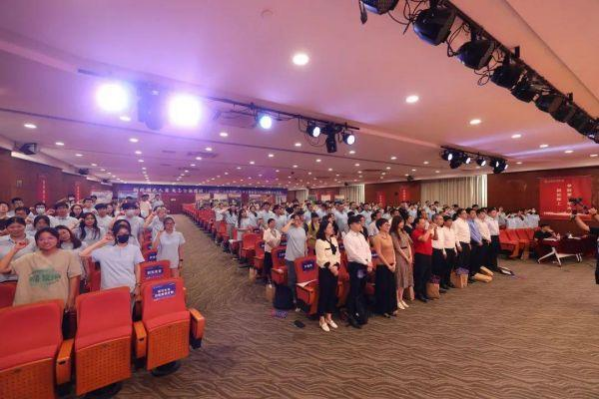 祁明为专项暑期社会实践授旗。出征小组代表随后带领全场同学进行出征宣誓。在庄严的誓词中,同学们表达了胸怀国之大者、矢志金融报国,为乡村振兴和国家发展不懈奋斗的坚定决心。