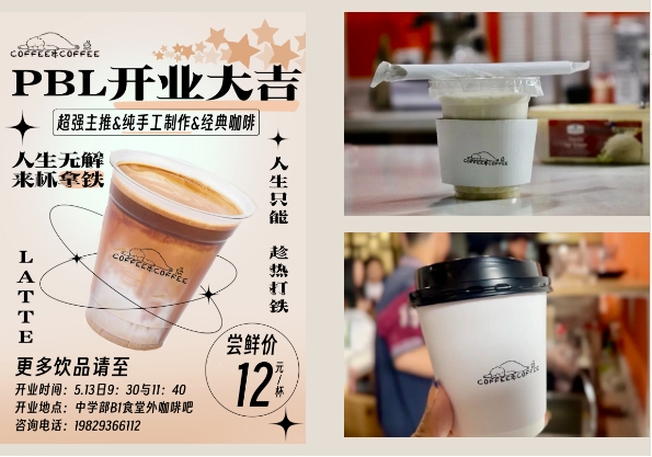 经过团队成员持续两个月的努力,PBL咖啡吧逐渐在校园内崭露头角。在PBL咖啡吧里,每一位顾客都能找到属于自己的味道。初中部的同学们可以在这里品尝到加热牛奶、酸奶和去冰水果茶等健康饮品;普高和融合的同学们则可以选择传统咖啡、创新咖啡、奶茶和水果茶等多样化选择;而老师们则可以在忙碌的工作之余享受到三明治等易制且卫生的食品以及提神醒脑的咖啡饮品。