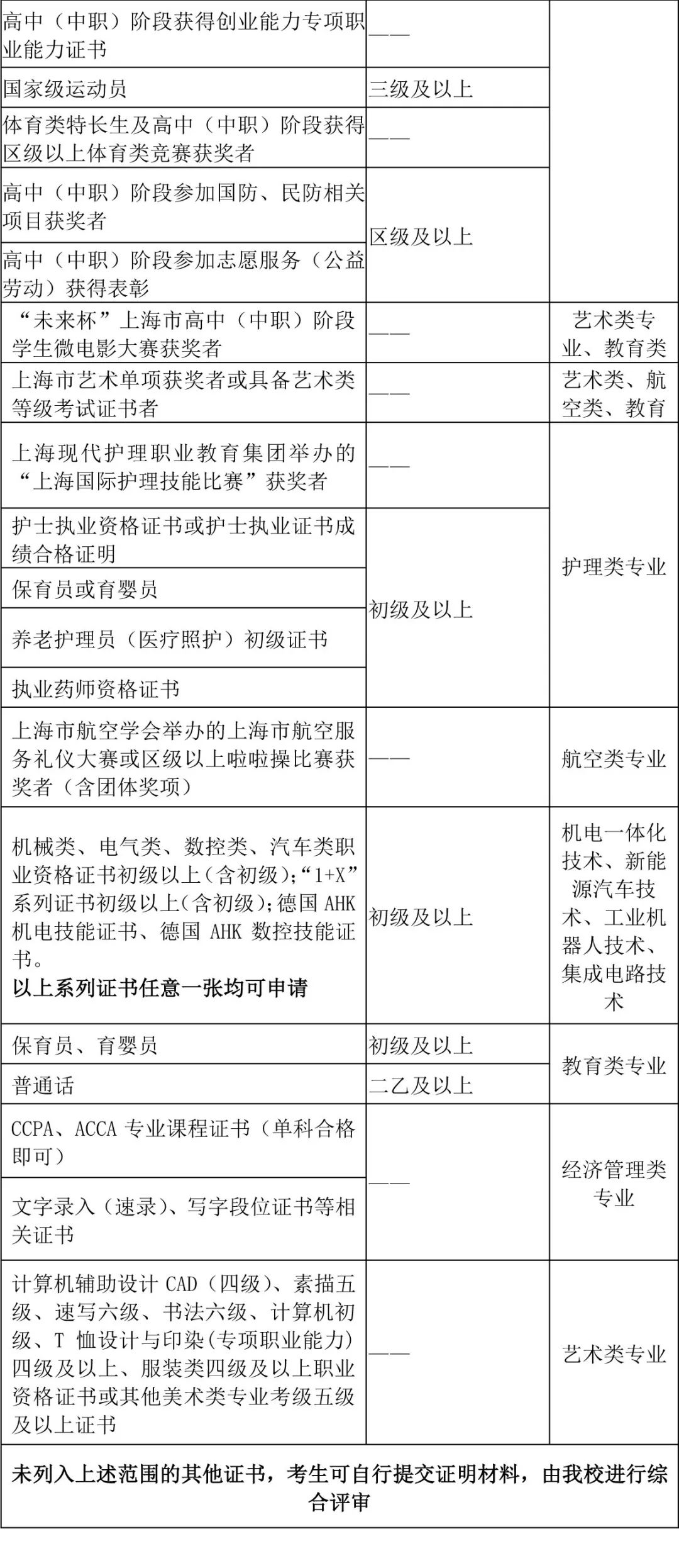 符合《上海市教育委员会关于做好2022年上海市普通高校考试招生报名工作的通知》(沪教委学〔2021〕38号)、上海市教育考试院关于印发《2022年上海市普通高校考试招生报名实施办法》的通知 (沪教考院高招〔2021〕24号)和《上海市教育委员会关于印发〈2022年上海市部分普通高校专科层次实行依法自主招生改革试点方案〉的通知》(沪教委学〔2022〕2号)关于专科层次依法自主招生报名条件规定的考生,可报考我校2022年专科层次依法自主招生。