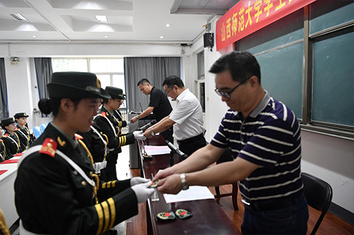 学工部(处)长李三红对第十届国旗班队员的辛勤付出表示感谢,充分肯定了他们所取得的成绩。同时,他向即将走向岗位的第十一届国旗班队员提出了三点希望:一是希望他们以第十届国旗班队员们为榜样,继承和发扬山西师范大学国旗班的优良传统和过硬作风,牢记自己的责任与使命,认真履行职责,不辜负全校师生期望,以更加出色的表现和更加优异的成绩完成学校交给的各项任务。二是希望队员们树立正确的追求,坚定的信念和顽强的意志,爱党、爱国、爱校、爱国旗,学习好国旗法,守卫好国旗,自觉提高自身综合素质,提高国旗护卫的能力。三是希望队员们广泛听取同学、老师对国旗班的建议和意见,创新工作方法,提高工作效率。同时,在学习工作中更加严格要求自己,保持学生国旗班在全校师生中的良好形象,用更加优秀的表现为学生国旗班和学校精神文明建设争光添彩。