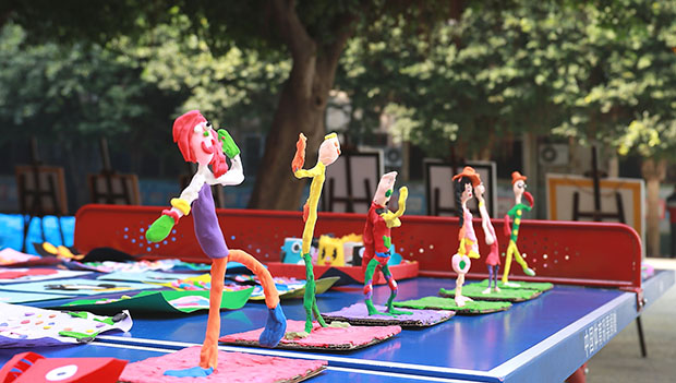 本次课后服务优秀成果展形式多样,有来自少儿国画、我爱书法、巧手制作、快乐剪纸、超轻黏土、机器人等社团的同学现场学能展示,也有课后服务各社团的优秀作品展览,还有语言、音乐类社团的学生节目展演以及体育类社团学生的技能展示。