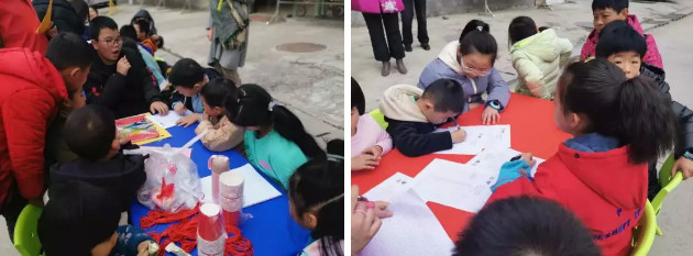 春节即将到来,志愿者们还带来了剪窗花、画卡通福字、年画人物等活动。
