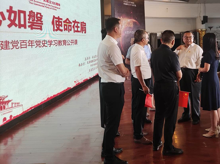 6月30日晚,由马克思主义学院主办,天府课程思政研究中心、中华吟诵推广中心、马克思主义研究学会联合承办的“初心如磐,使命在肩”建党百年党史学习教育公开课在西南财经大学天府学院绵阳校区学术报告厅开讲。学校校长蒲果泉、常务副校长黄纯国、党委副书记黄琳、副校长袁勋、钟成、苟兴才、刘强,以及全校400余名师生代表共同参加了此次公开课。本次课程由马克思主义学院直属党支部书记丁灵芝主讲。