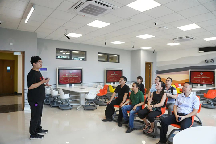 中软国际集团一行对吉利学院的智能制造工程中心、智慧教室、计算机教室以及学生宿舍、立德楼、明德楼进行了实地考察。