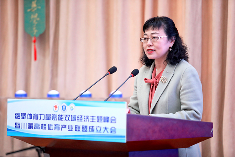 四川省体育局副局长程静、重庆市体育局产业市场处处长卢鸿毅、西南大学副校长葛信勇分别致辞,寄语希望通过本次大会的举行及联盟的成立发挥高等院校的作用,助力成渝地区双城经济圈的发展。