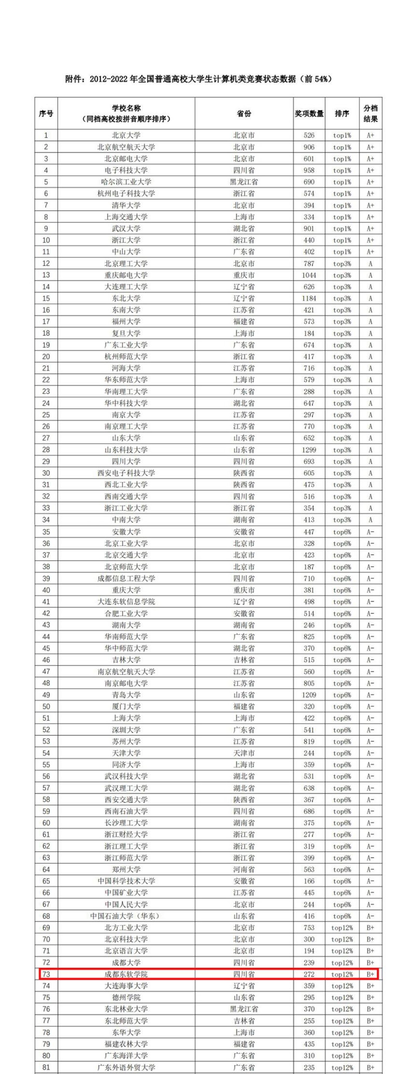 全国第二,省内第一:成都东软学院在2012-2022年全国普通高校大学生计算机类竞赛状态数据中位居民办高校前列