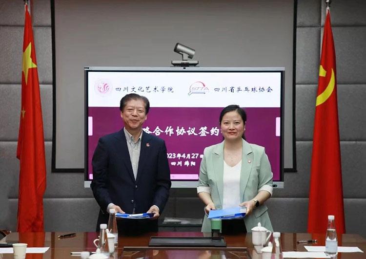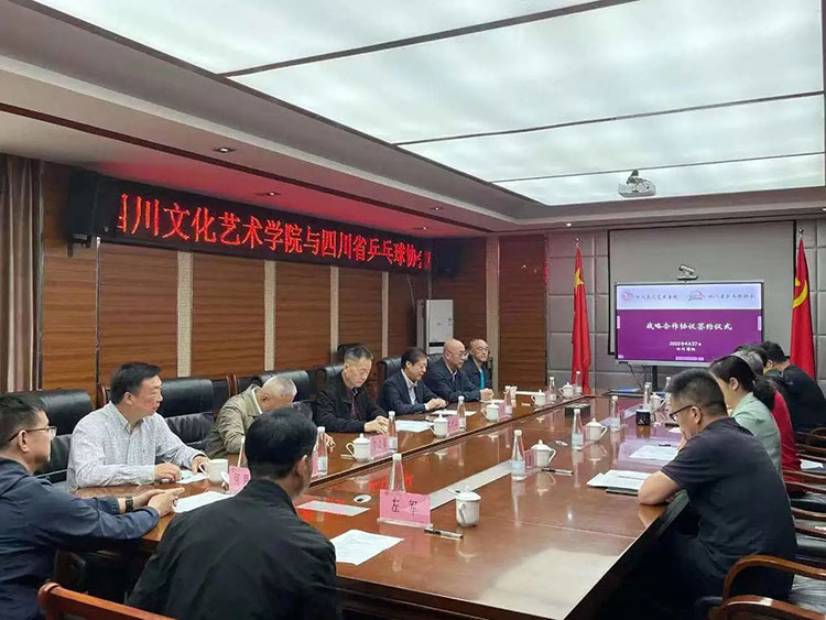 4月27日,四川文化艺术学院与四川省兵乓球协会签订战略合作协议。未来双方将在乒乓球项目群众体育推广、赛事承办、青少年后备人才培养以及乒乓球项目国家级专项资质培训、国球进校园教练员专项资质培训、乒乓球青少年运动等级标准测试推广、乒乓球项目科研合作等方面进行深度合作。