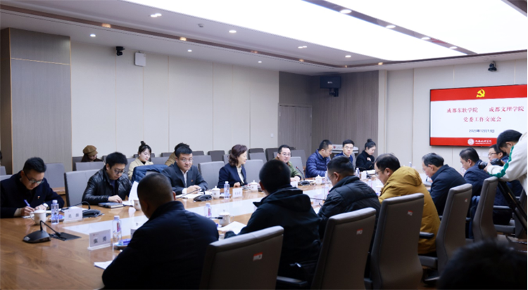 12月13日上午,成都东软学院党委书记赖廷谦携党群工作部、党委组织部、党委学生工作部主要负责同志,二级学院党组织书记及基层党务工作同志一行共18人赴成都文理学院就党委相关工作进行调研交流,成都文理学院党委书记、政府督导专员高华锦,党委副书记、工会主席卢元勇及相关负责同志热情接待,并进行了座谈交流。