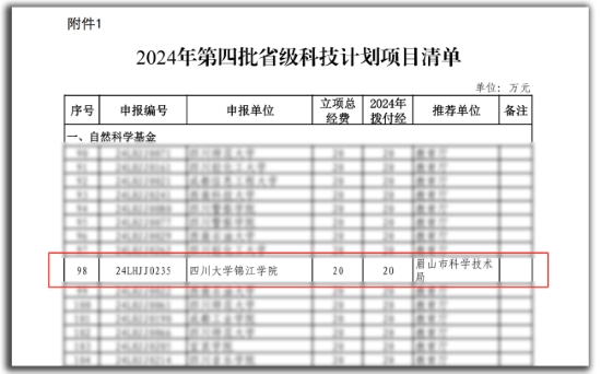 四川大学锦江学院高度重视科研工作。近年来,学校在平台建设和科学研究方面取得重大进展,获批省级科研平台2个,四川省哲学社会科学高水平研究团队1个,获省级及以上科研项目20余项。学校将以2024年第四批省级科技计划项目立项为契机,进一步加强科研团队建设,优化科研资源配置,推动科研成果转化,赋能地方经济社会发展。