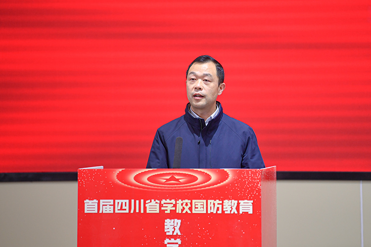 西南科技大学副校长代波在开场致辞中介绍,近年来,学校始终坚持以习近平新时代中国特色社会主义思想为指导,充分发挥区域国防军工资源优势,在课堂教学、实训实练、第二课堂、氛围营造等方面多点发力,着力构建“学校—部队—军工行业”高质量国防教育体系,提升学生国防观念和国防素养。学校获评金博宝最新官方网站查询网址 “国防教育特色学校”,学校师生在全国军事课教学展示、全国兵棋推演大赛、四川省高校“爱我国防”宣讲大赛等多项国防赛事中获得优异成绩。他表示,学校将继续贯彻落实中央和省委关于加强全民国防教育的部署要求,进一步提高学校国防教育教学工作水平,强化师生强国建设的责任担当,为新时代强国建设注入磅礴力量。
