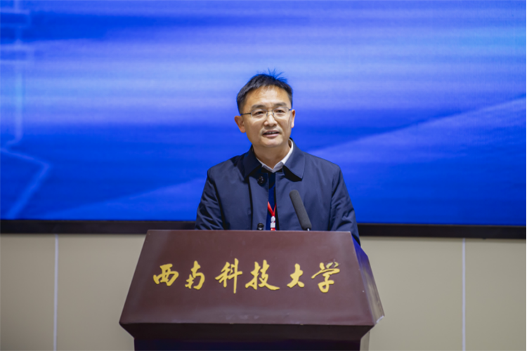 西南科技大学校长祝效华致欢迎辞,代表学校热烈欢迎参会的领导和嘉宾。他表示,西南科技大学有幸承办此次会议,深感荣幸与责任并重,学校将以本次大会的召开为契机,进一步整合政产学研用等各方面优势资源,深度激发创新活力,在加快建设教育强国、科技强国、人才强国的新征程上,不断贡献西南科大的智慧和力量。