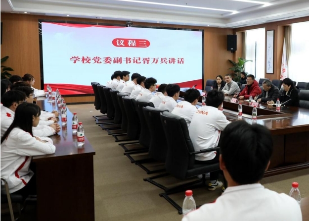 2月28日下午,成都体育学院2025年春季学期峨边支教团出征仪式在学校行政楼416会议室举行。学校党委副书记胥万兵、体育教育学院党委书记郭晋川、副院长李德华参加仪式。出征仪式由乡村振兴办主任张强主持。
