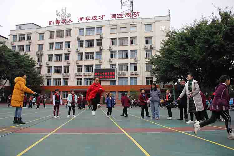 最后潘明英校长宣布遂宁二中滨江校区“逐梦.超越”第四届冬季运动会正式开幕。
