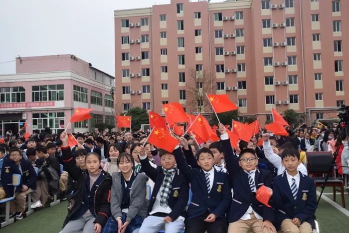 遂宁市自规分局副局长、团区委书记黄竞,区社事局科长袁卫东,区党群工作部干部漆尧,学校党委副书记、副校长、外国语学校校长杨洪春,副校长陈海荣、漆兵、何涛、张小敏,学校党委副书记邓政,副校长何荣松、彭全忠及党委委员唐剑等领导出席,小学至高二全体师生参加了活动。