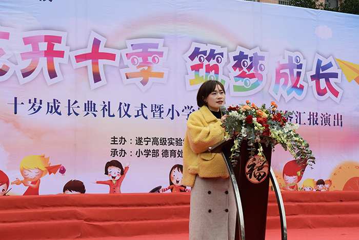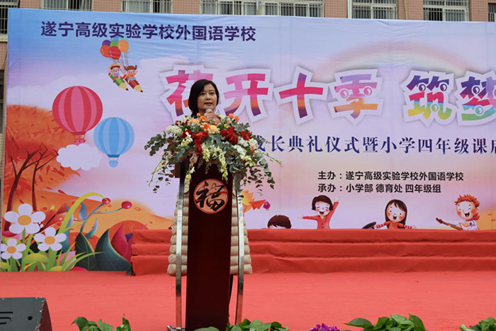 成长的日子里少不了师长的指点和鼓励。遂宁高级实验学校外国语学校副校长张小敏对同学们寄予衷心祝愿和殷切希望。