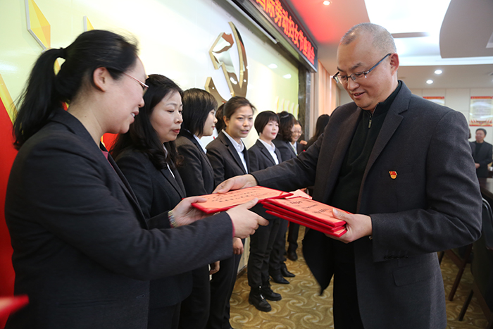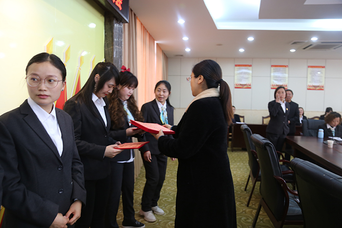 射洪中学工会女工委主任刘晓兰宣读“三八”节表彰文件,该校授予陈泠西等53名同志“教书育人先进个人”称号,授予胥杉杉等18名同志“巾帼建功先进个人”称号,授予李春芝等8名同志“服务育人先进个人”称号。