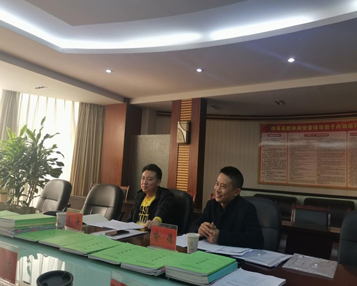 肖海(左一)在蓬溪教体局召开教育督导调研座谈会
