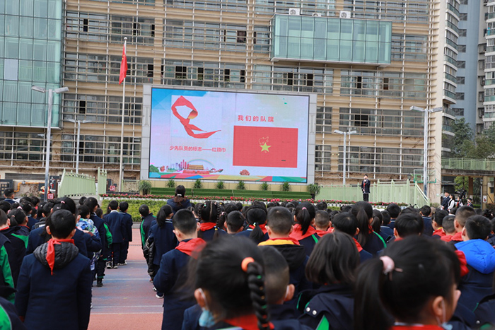 在中国共产党成立的百年伟大历程中,有很多影响深远的、值得纪念的重大事件。开学典礼上大队委张沛然同学声情并茂地向全体学生讲述了部分党史,告诉同学们历史的背后隐藏着革命先烈向封建主义、资本主义艰苦抗争的决心与艰辛。他带领同学们认识党旗、国旗,队旗,重温入队誓词,小小的一堂讲座容纳了少先队员对党的热爱、对革命先烈无限崇敬之情。