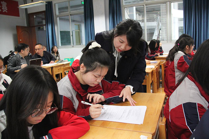 当日下午,高三年级优秀语文教师郭梅主讲公开课《考试作文评讲之升格训练》。她教学风格风趣生动,节奏有度,她紧扣主题,并以提问引发学生思考。在通过实例案例,让学生参与到其中,更为有效地提高了课堂教学效率。