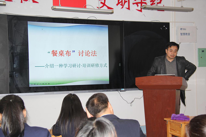 最后,罗小维以《“餐桌布”讨论法——介绍一种学习研讨·培训研修方法》为主题讲座。讲座内涵丰富,兼具深度和广度。老师们仔细聆听、认真笔记,不时传来阵阵热烈的掌声、发出会心的微笑。