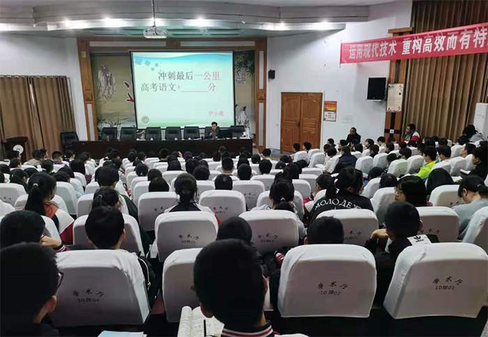 最后,在遂宁中学政教处副主任、高三年级管理组成员范文杰的主持下,专家罗小维老师面向高三学生举办以《冲刺最后一公里,语文高考+___分》为主题的高三冲刺阶段语文复习的专题讲座。