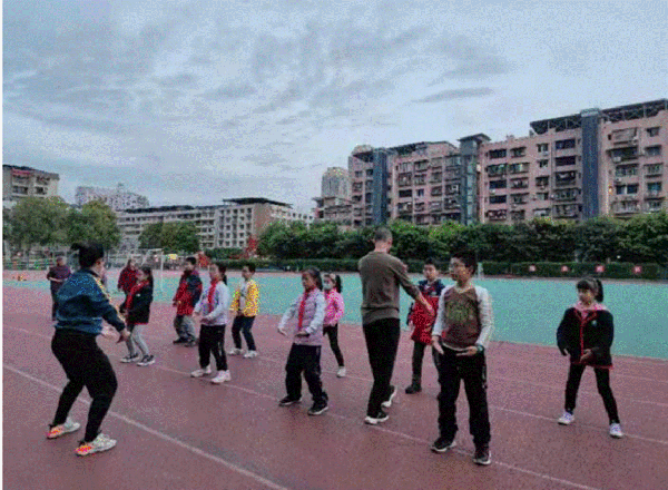 为了在此次比赛中取得好成绩,教职工子女队的队员们提前一个月积极备战。教练邹家明老师利用队员们放学和放假时间耐心教授、并邀请健身气功国家一级社会体育指导员,武术国家一级裁判长蒋婷老师、校体育老师张群老师指导。