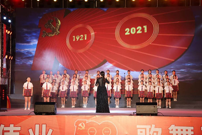 “共产党辛劳为民族,共产党他一心救中国,他指给了人民解放的道路,他领导中国走向光明……”最后,全体师生起立合唱《没有共产党就没有新中国》,为本届文艺汇演画上圆满句号。
