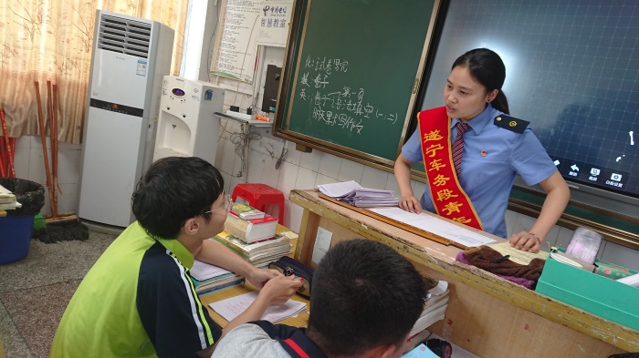 7月8日上午,成都铁路局遂宁机务段助理工程师胡志敏一行5人走进遂宁六中对铁路路外安全知识进行宣传。