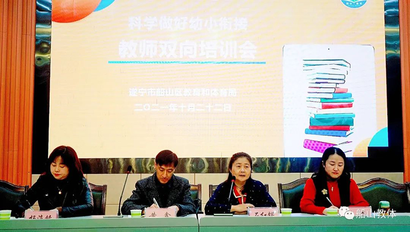 为全面实施幼儿园入学准备和小学入学适应教育,扎实推进船山区幼儿园与小学科学衔接试点区工作,10月22日,由船山区教体局教育股组织,船山区科学做好幼小衔接教师双向培训工作会在高升实验小学举行,全区幼儿园大班及小学一年级相关负责人、教师参加培训会。