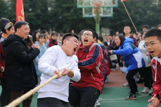 阳光照耀的后操场,四根粗麻绳躺在地上。红标两侧,高三学子跃跃欲试。哨声响起,呐喊助威声回荡在操场上空,红标左右移动。同学们攥紧的双手,挥洒的汗水展示着这场力量与团结的比赛。结束哨吹响,欢呼与惜败的声音响起,有些许的不服气,但更多是彼此的安慰与鼓励。上一场的对手,在下一场便成为了互相加油的队友。