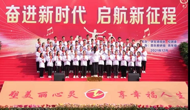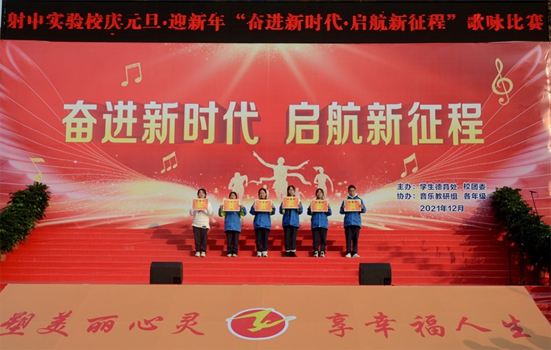 为教育引导广大师生学党史,强信念,跟党走,展示师生知党好、感党恩的积极风貌,激发师生们的工作和学习激情,丰富校园文化生活,提振精气神,凝聚正能量,由射中实验校学生德育处、校团委主办,音乐教研组、各年级协办的“奋进新时代·启航新征程”庆元旦·迎新年歌咏比赛于12月21日下午在广寒运动场隆重举行。