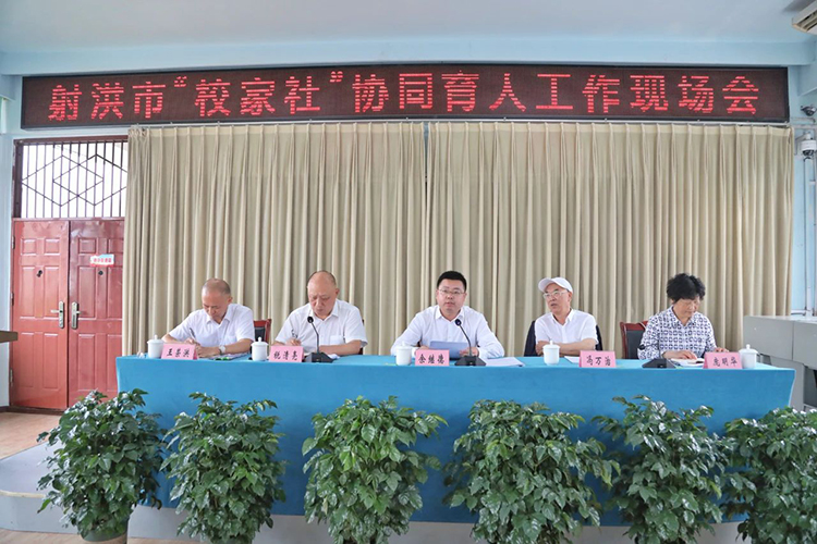 4月18日,射洪市“校家社”协同育人工作现场会在射洪一小召开,射洪市委常委、组织部部长,市关工委主任余继德出席会议并讲话。市关工委执行主任税清亮主持会议。市关工委名誉主任冯万治,市关工委常务副主任、市关心下一代基金会理事长庞明华,市关工委常务副主任王荣洪出席会议。