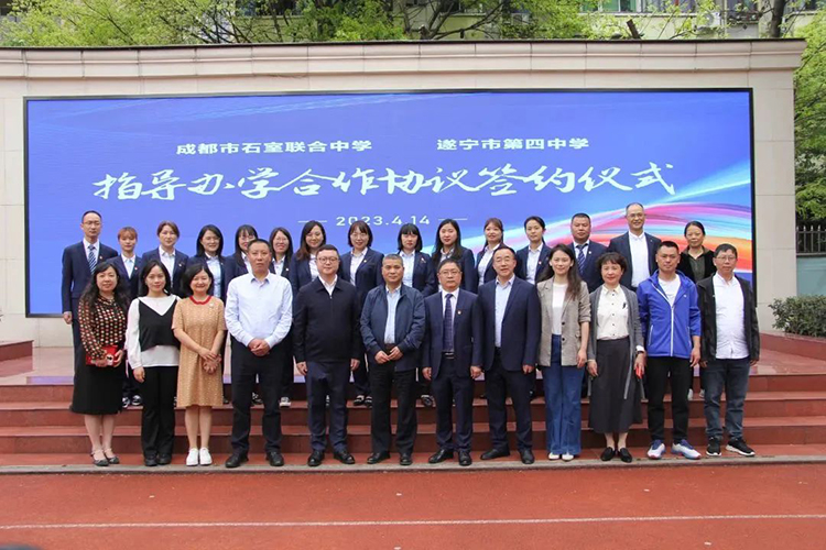 为全面落实党的二十大报告精神,努力促进义务教育优质均衡发展,深化成遂教育合作,办好人民满意的教育,4月14日,成都市石室联合中学与遂宁市第四中学指导办学合作协议签约仪式在石室联合中学陕西街校区举行。