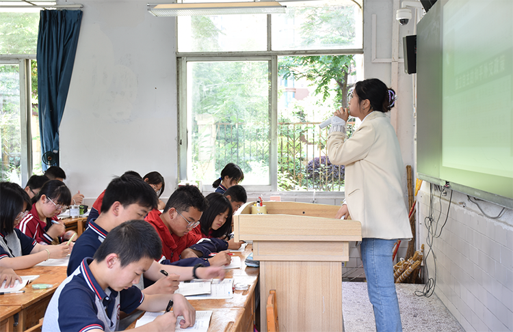 遂宁中学党委委员、副校长、高新校区执行校长杨兰萍向实习教师们表达期望,并分享了遂宁中学的课程教学体系。遂宁中学要实现课程精品化、课堂品质化、集体备课专业化和作业设计体系化,要以学生为本,领悟生命,感受生活,看见生长,让学生身动、神动、心动,从而真正践行“生·动”课堂。同时,结合自己的工作经历,杨校长希望老师们要提高政治站位,坚守教师教育初心使命,加强教育理论学习,不断提高专业素养,把学习的收获转化为履职尽责的过硬本领,做到眼中有光,心中有梦,争做一名有理想信念、有道德情操、有扎实学识、有仁爱之心的“四有”好老师。