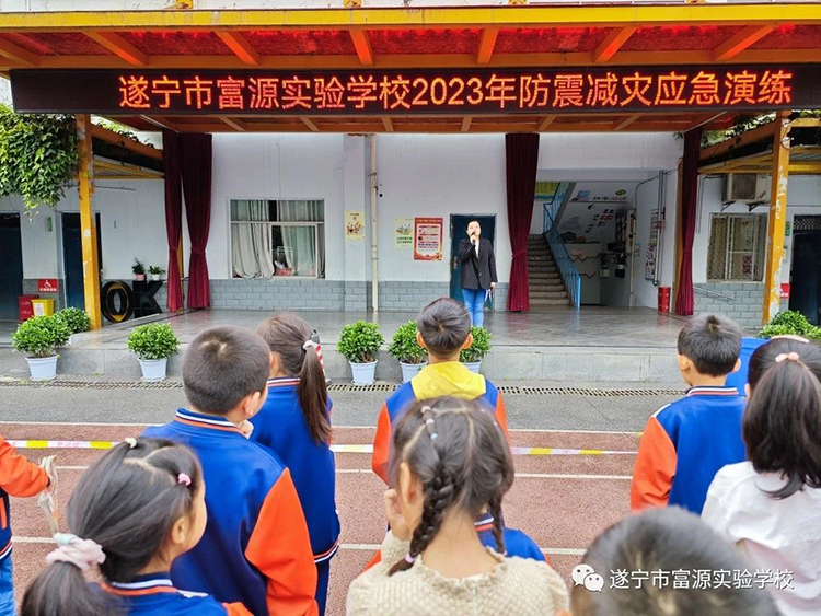 常思灾难之害,常修防灾之功。地震已经敲响了无数次警钟,危难时刻如何自救已是大家必需的生存技能。5月11日,遂宁市富源实验学校开展了“防震减灾”应急演练。为了确保此次演练安全地开展,学校组织召开了防震减灾筹备会。会上,高岚主任解读了演练方案,对老师们的工作进行安排。何强副校长对演练中的注意事项做了强调,要求各年级层层落实。此次演练分为两个板块,室内避险及室外疏散。
