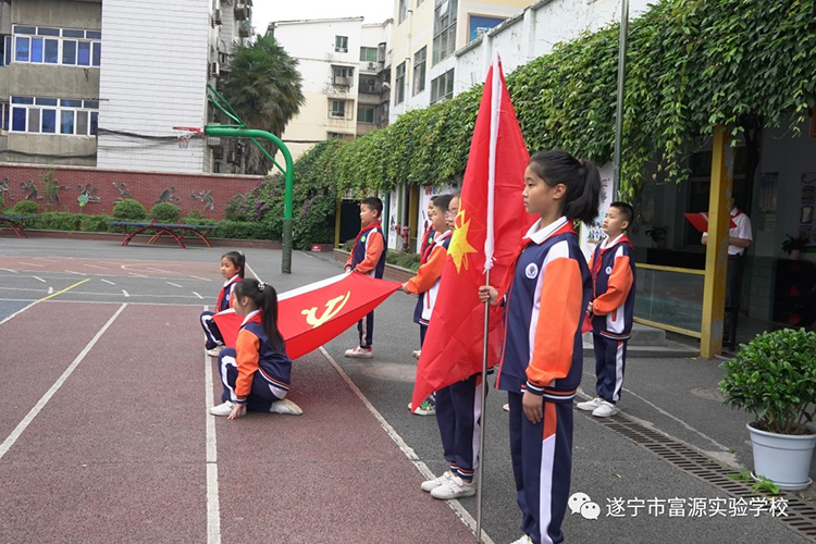 为深入学习贯彻党的二十大精神,落实关于少年儿童和少先队工作的重要指示,弘扬爱国主义和继承革命传统,切实增强少先队员的使命感和归属感,5月25日上午,遂宁市富源实验学校为2022级第一批入队的75名新队员举行了“童心向党 薪火相传”入队仪式。